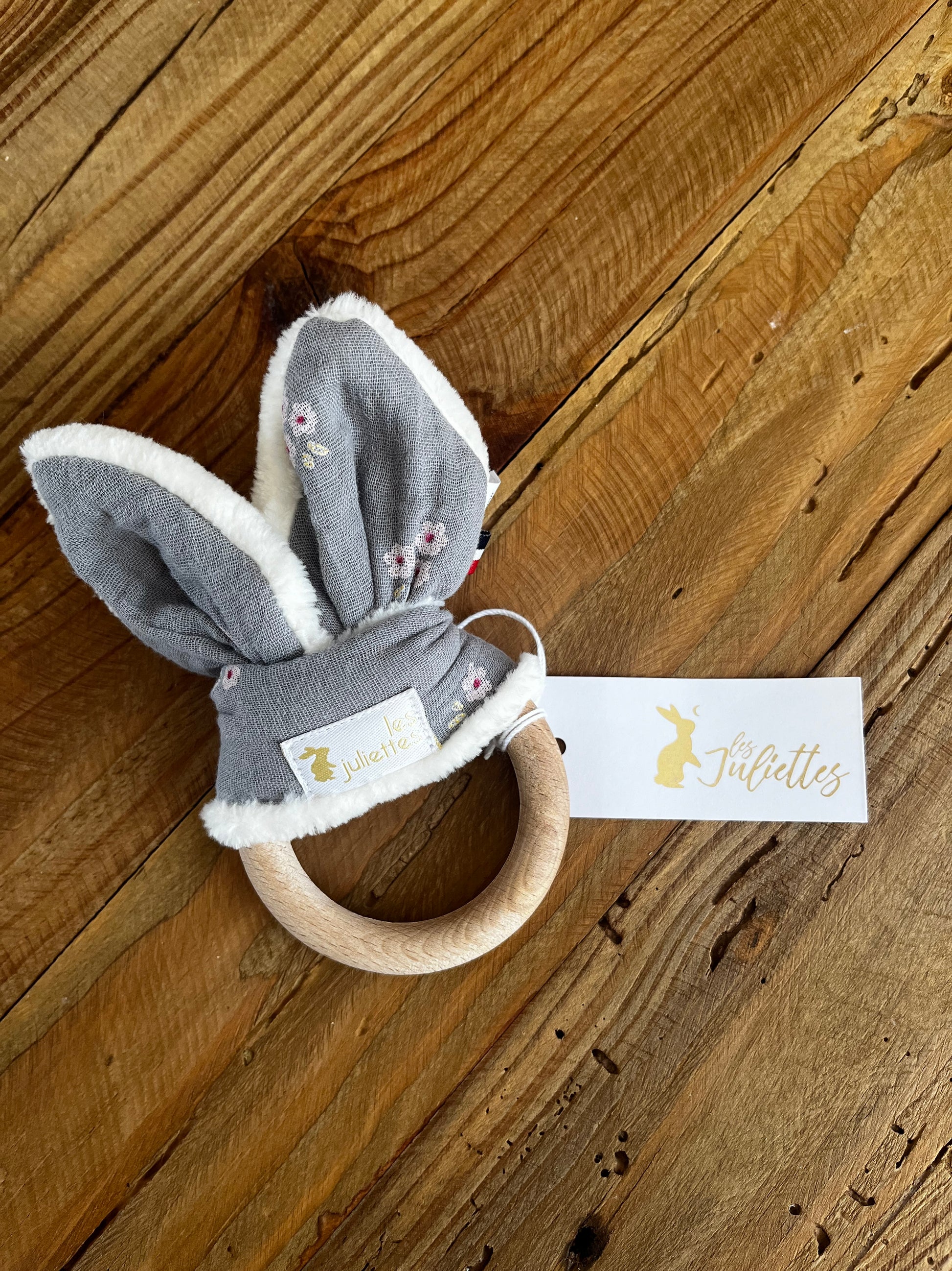 Anneau de dentition lapinou gaze fleurettes grises "Les Juliettes"