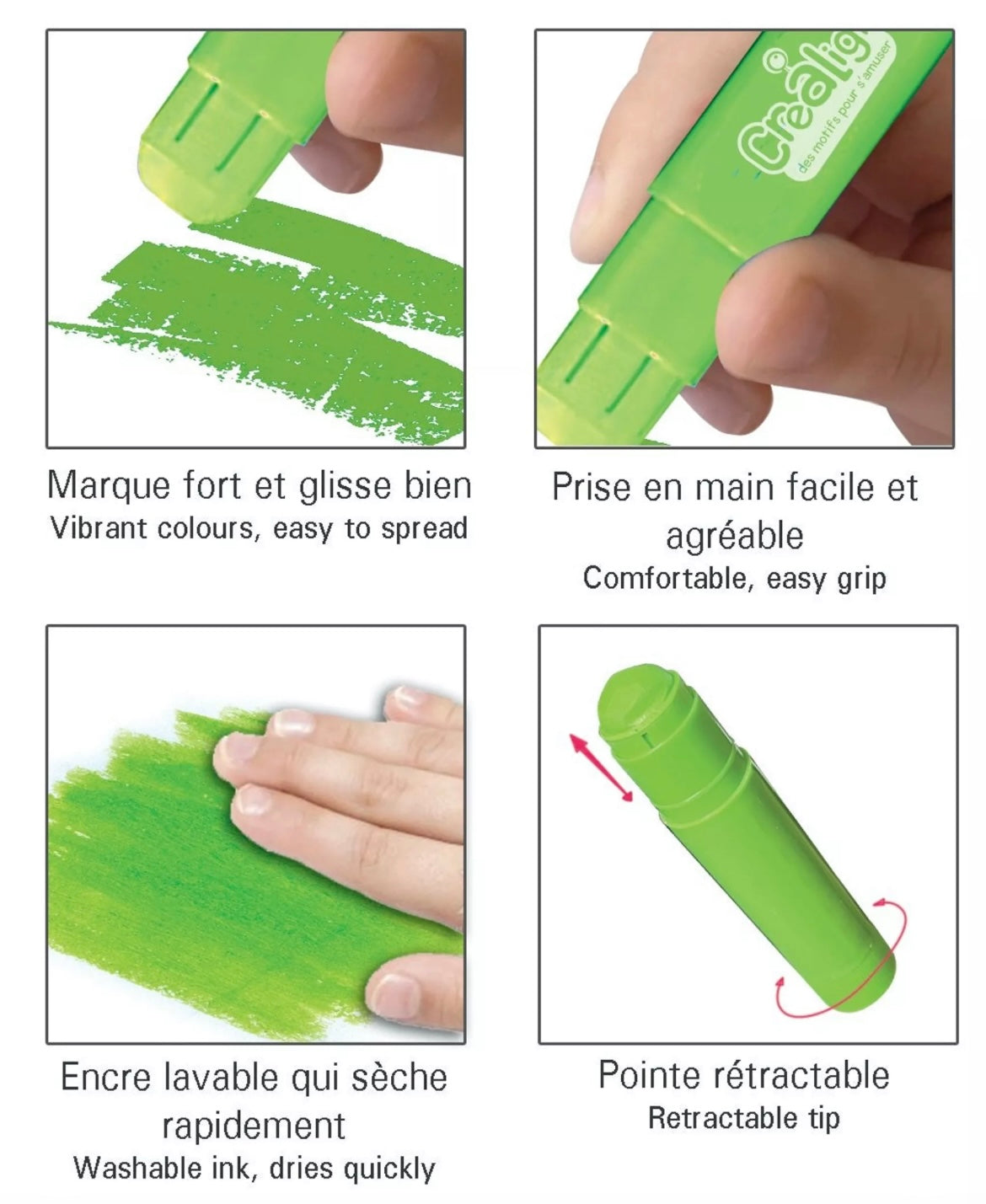 Les couleurs sont vives et plus couvrantes que des crayons de cire.