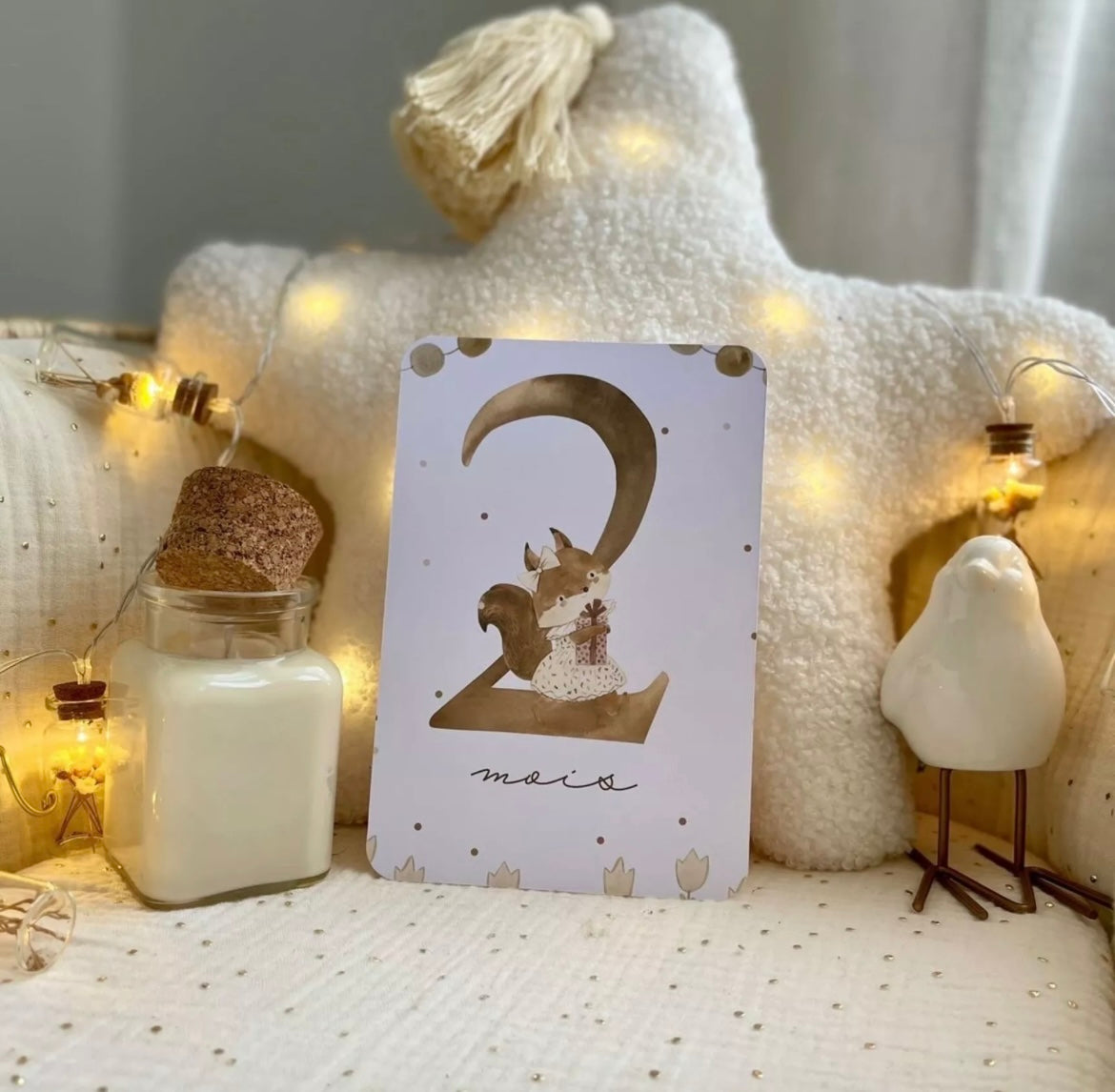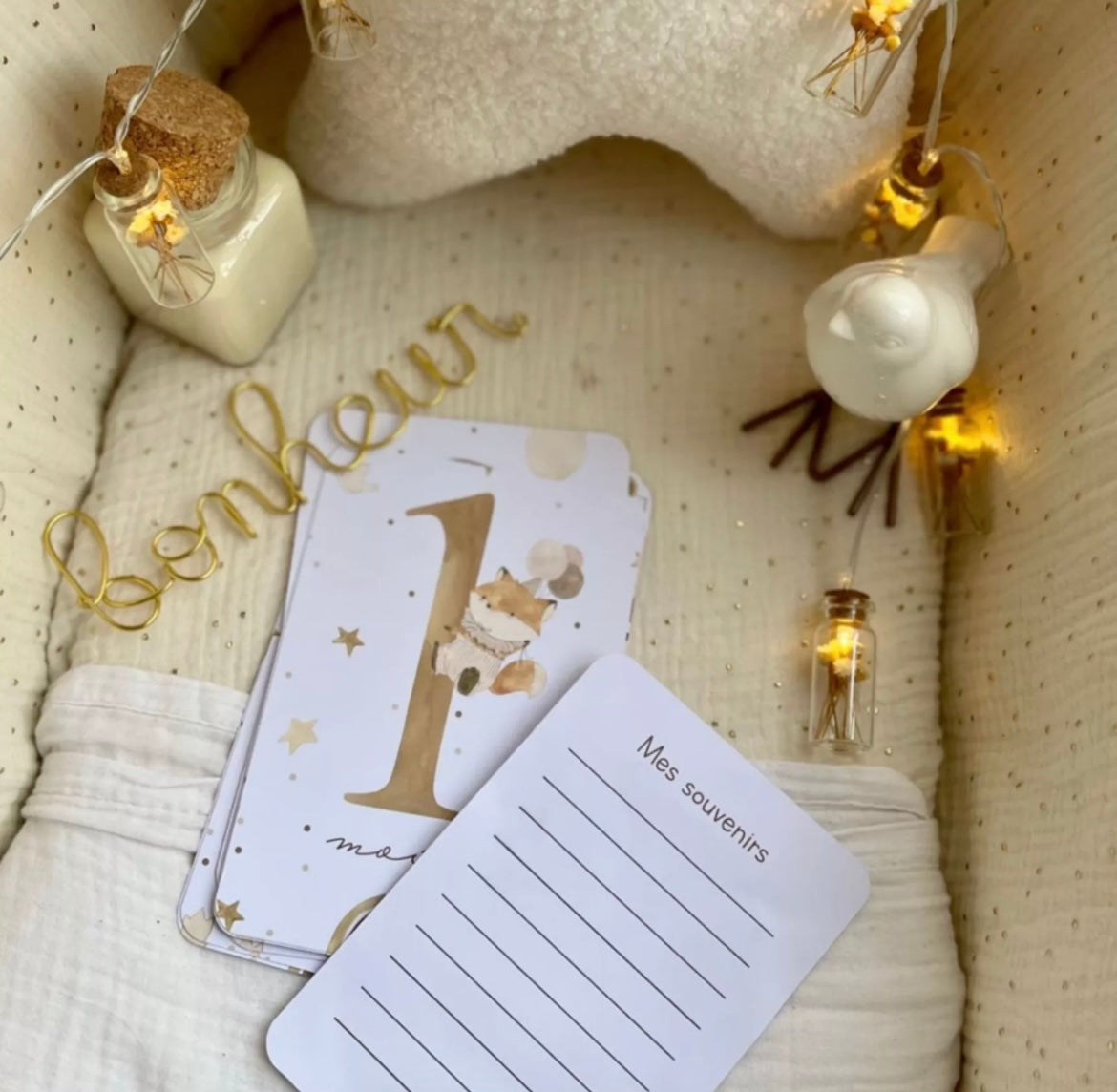 Immortalisez chaque instant en prenant une photo de l’évolution de votre bébé. Le kit est composé de 12 cartes, toutes réalisées à la main. Chaque carte est imprimée au recto et au verso.