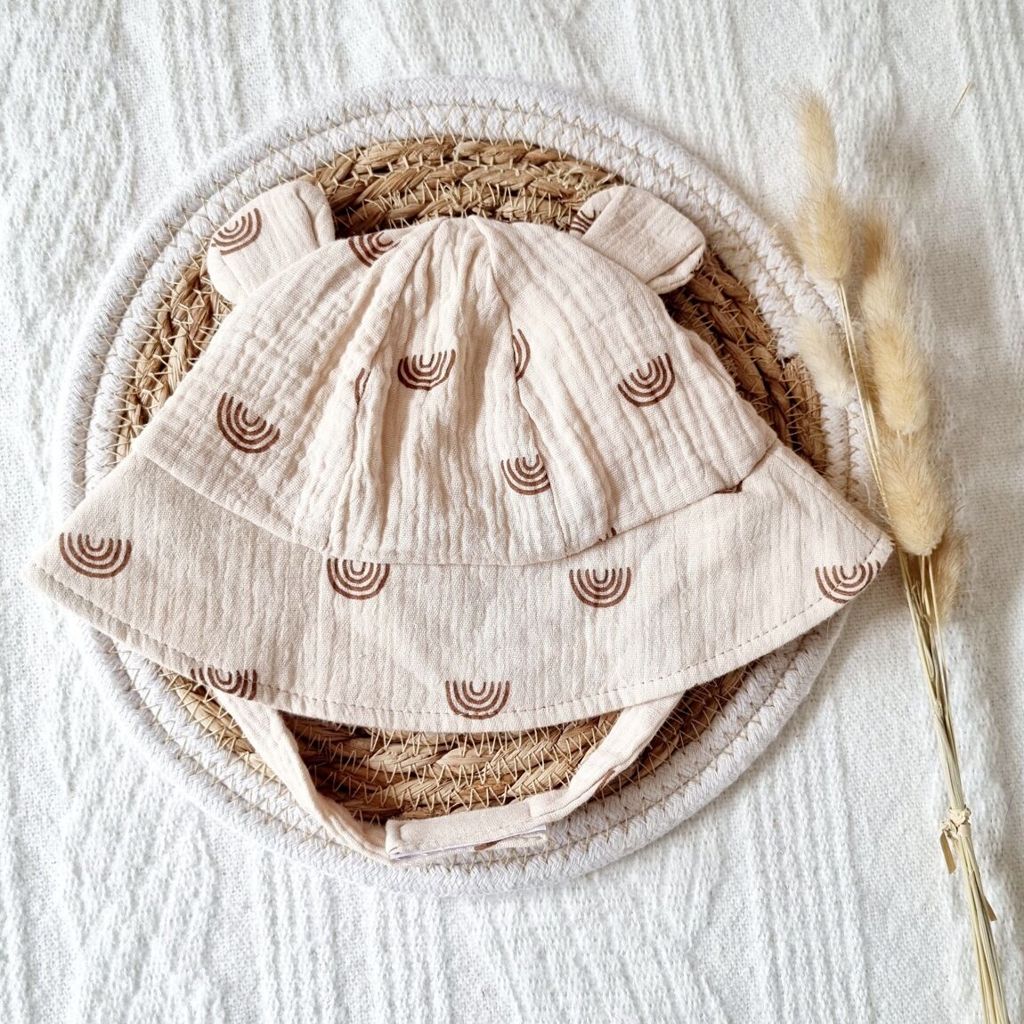 Chapeau de soleil hydrophile pour bébé - Beige avec arc-en-ciel