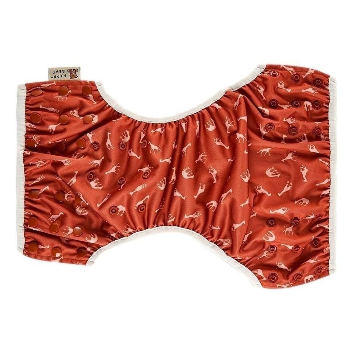 Assurez-vous que la couche de bain est bien ajustée autour des jambes et du torse de votre bébé, afin que les excréments ne puissent pas s'écouler. Il n'y a pas besoin de couche de bain jetable sous la couche de bain HappyBear.