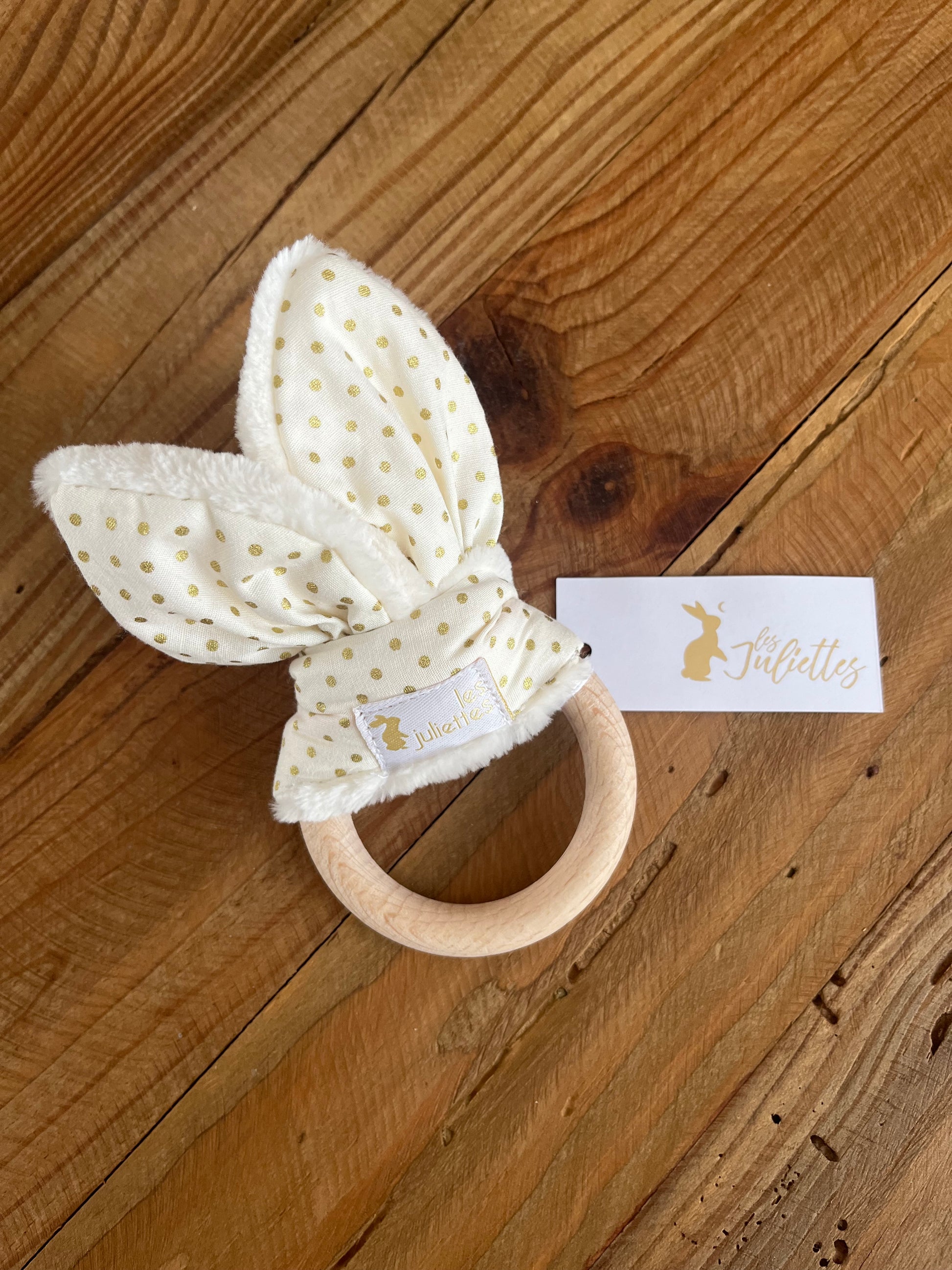 Anneau de dentition lapinou pois dorés "Les Juliettes"
