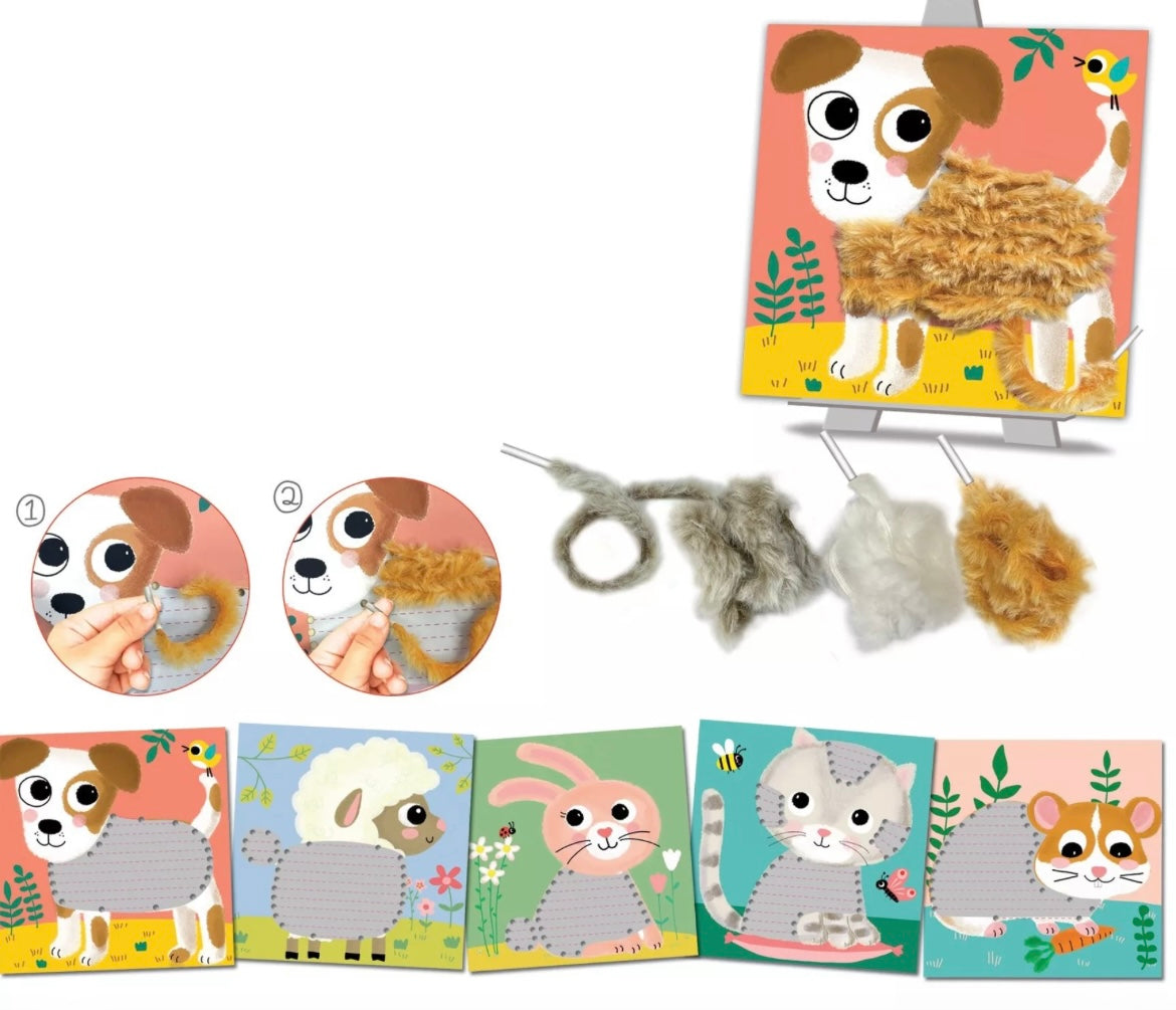 Grâce aux cartes à lacer et à la jolie laine les enfants créeront des douces fourrures d'animaux.