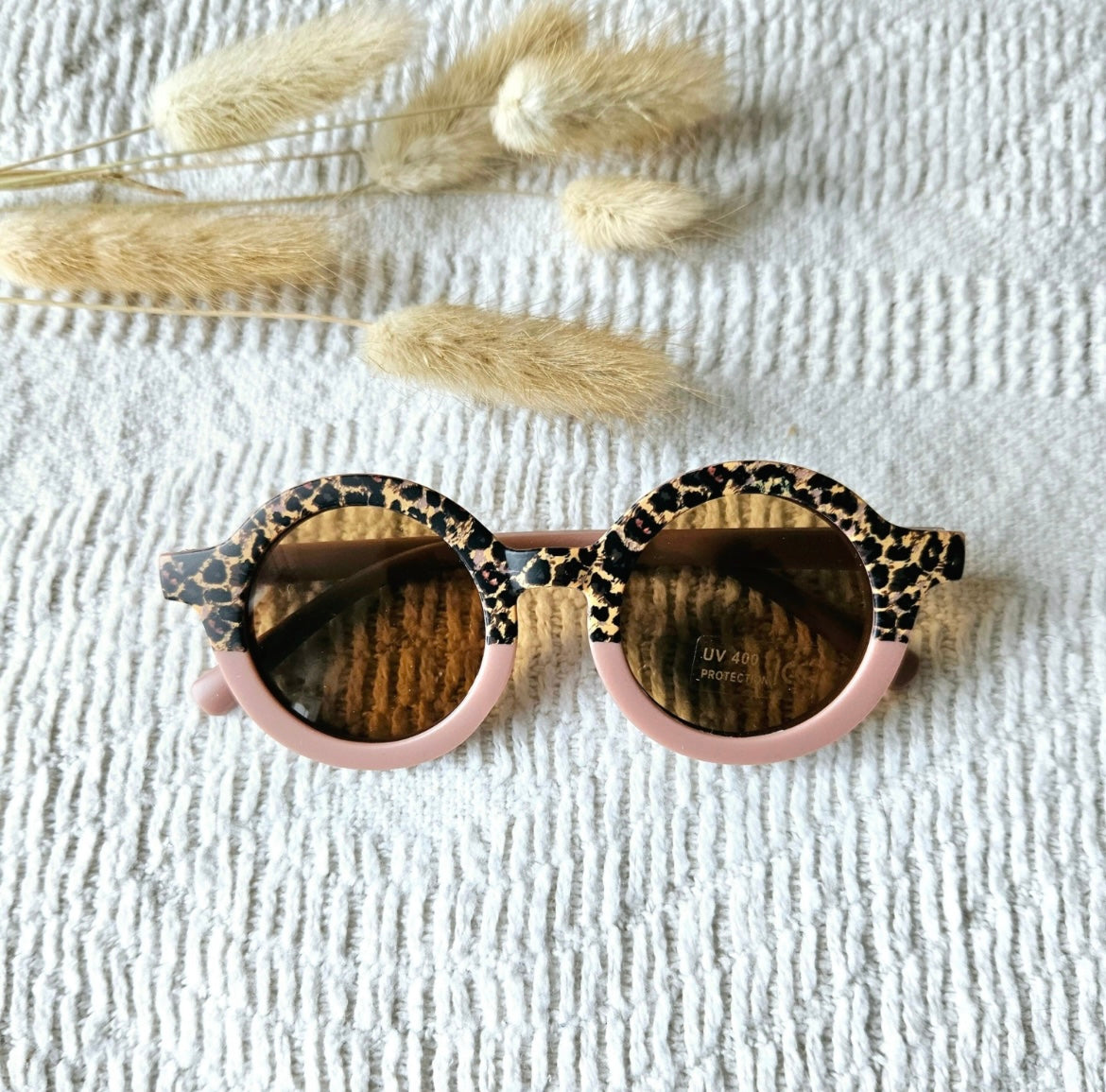 Lunettes de soleil bébé et enfant UV400 rondes - Vieux rose / Léopard