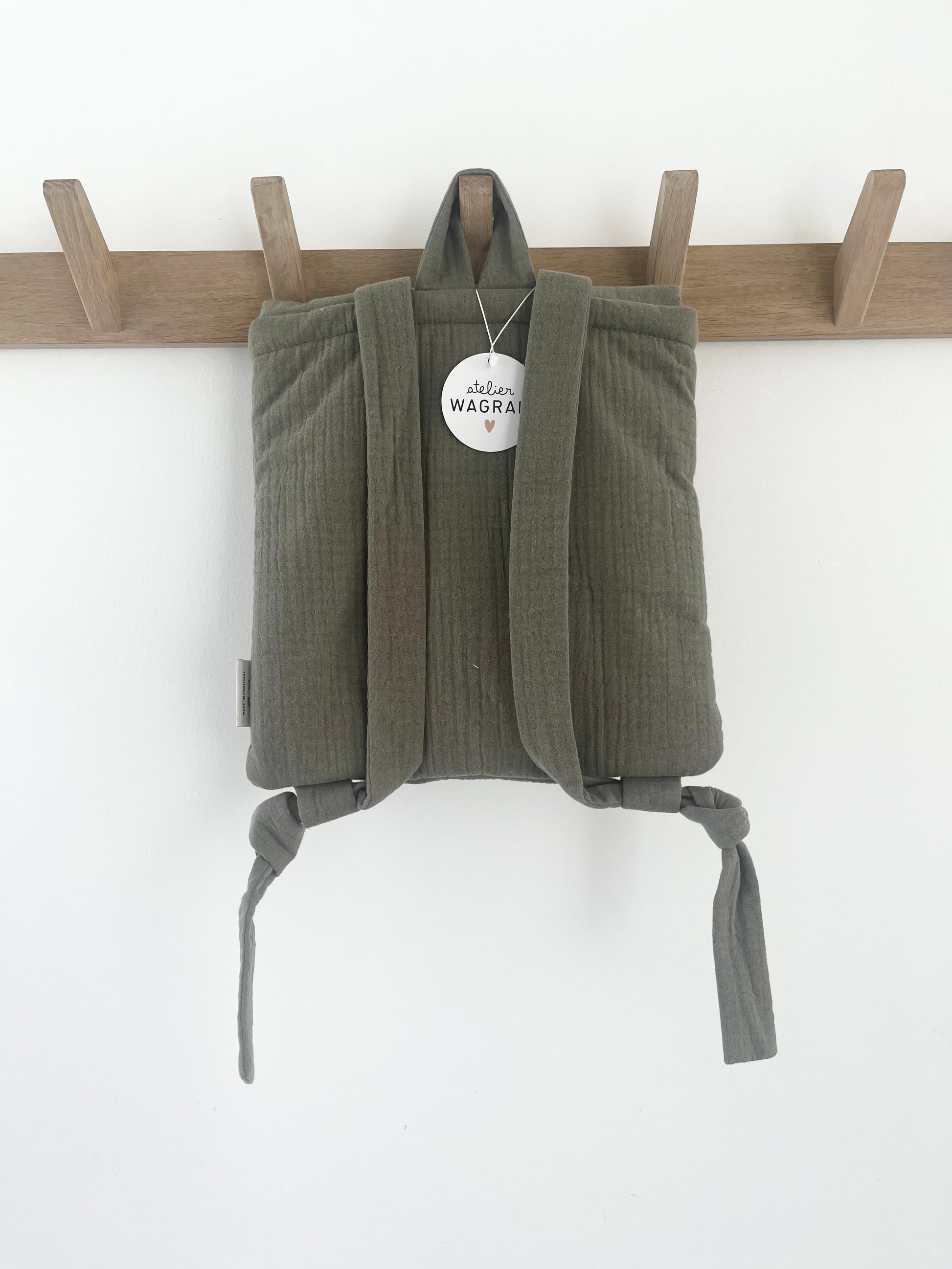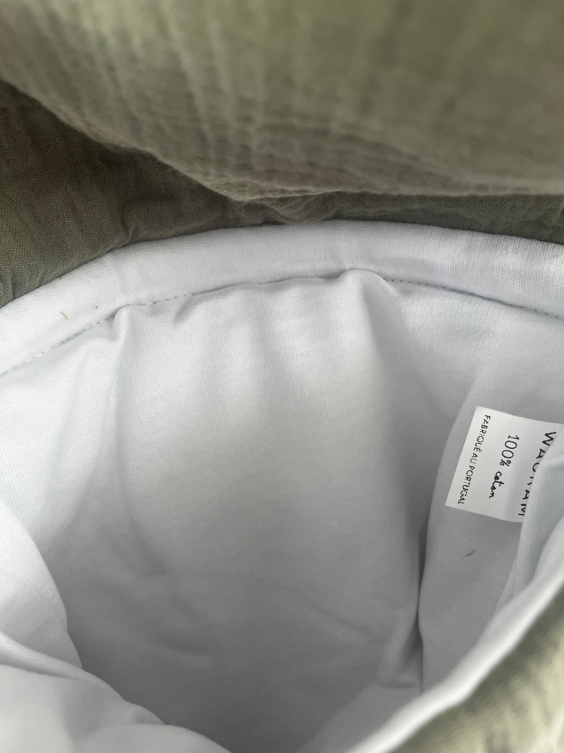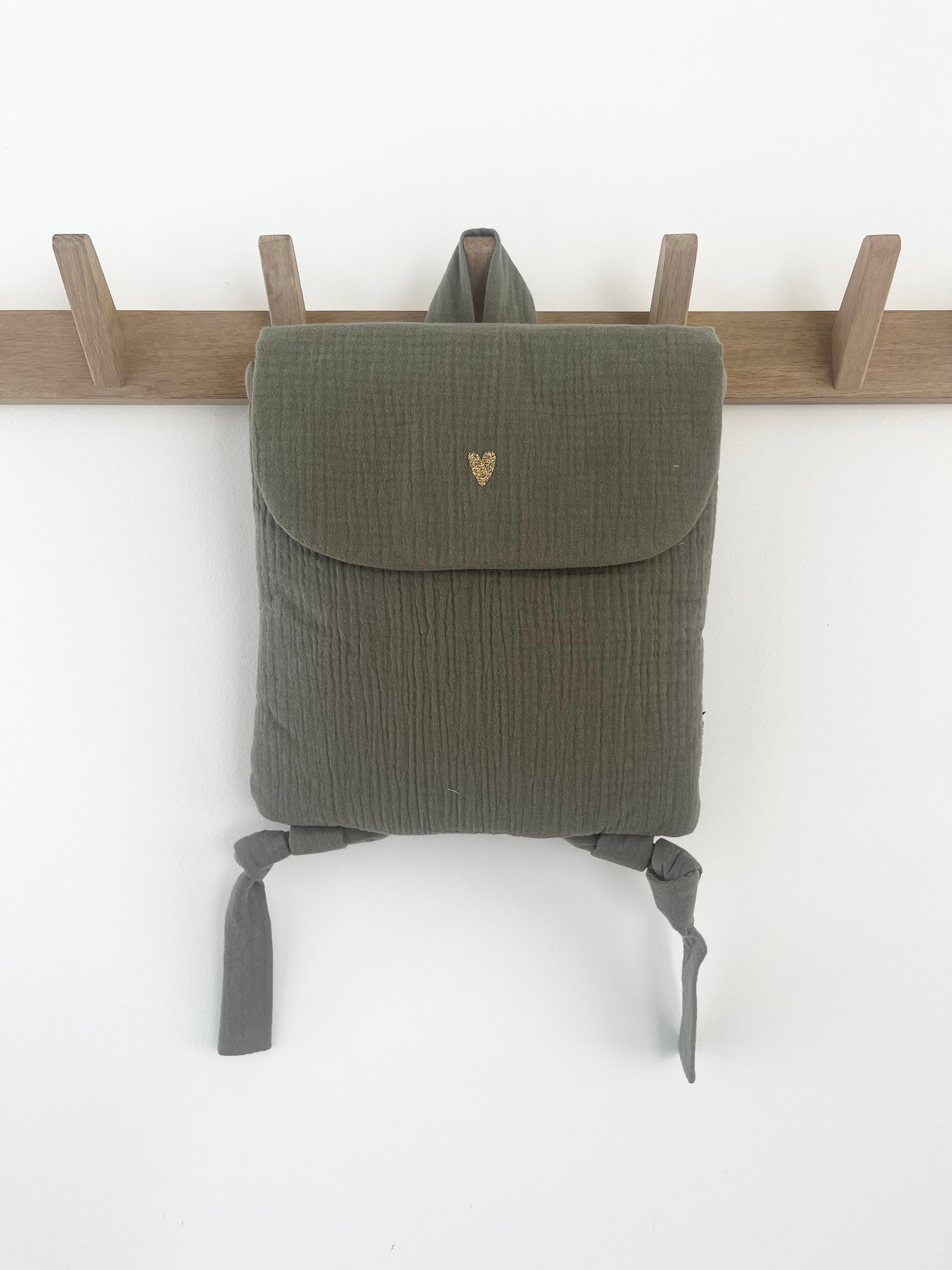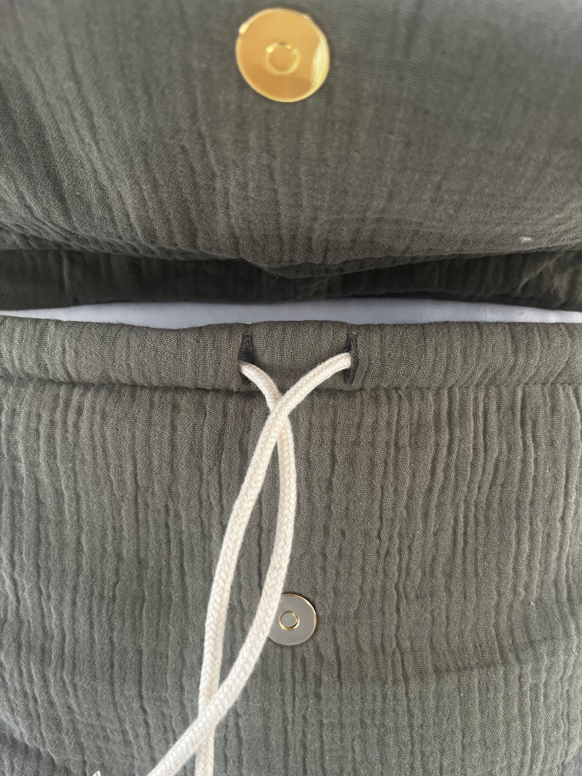 - Fermeture du sac à l'aide d'un cordon en coton et d'un bouton aimanté dans le rabat